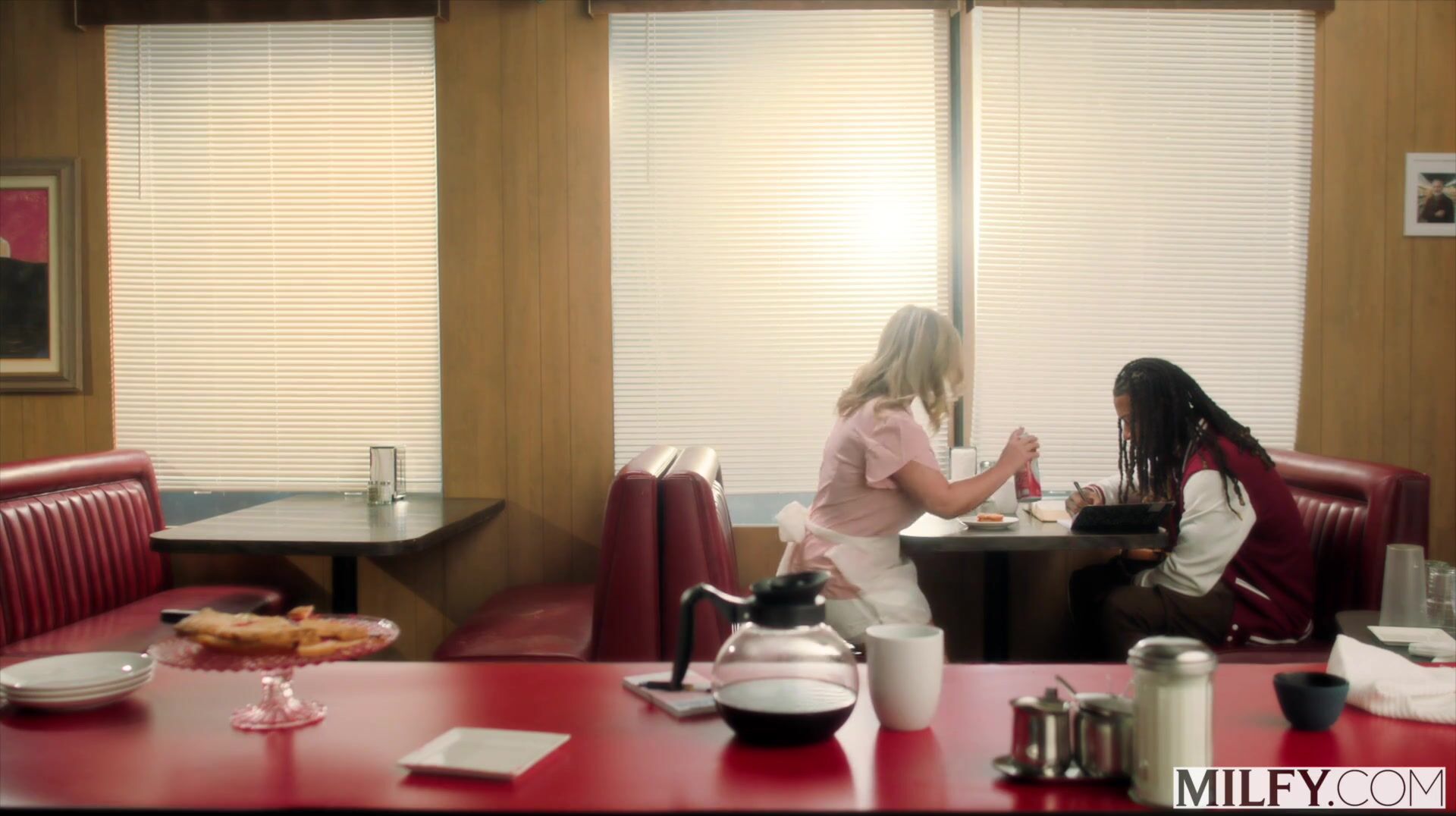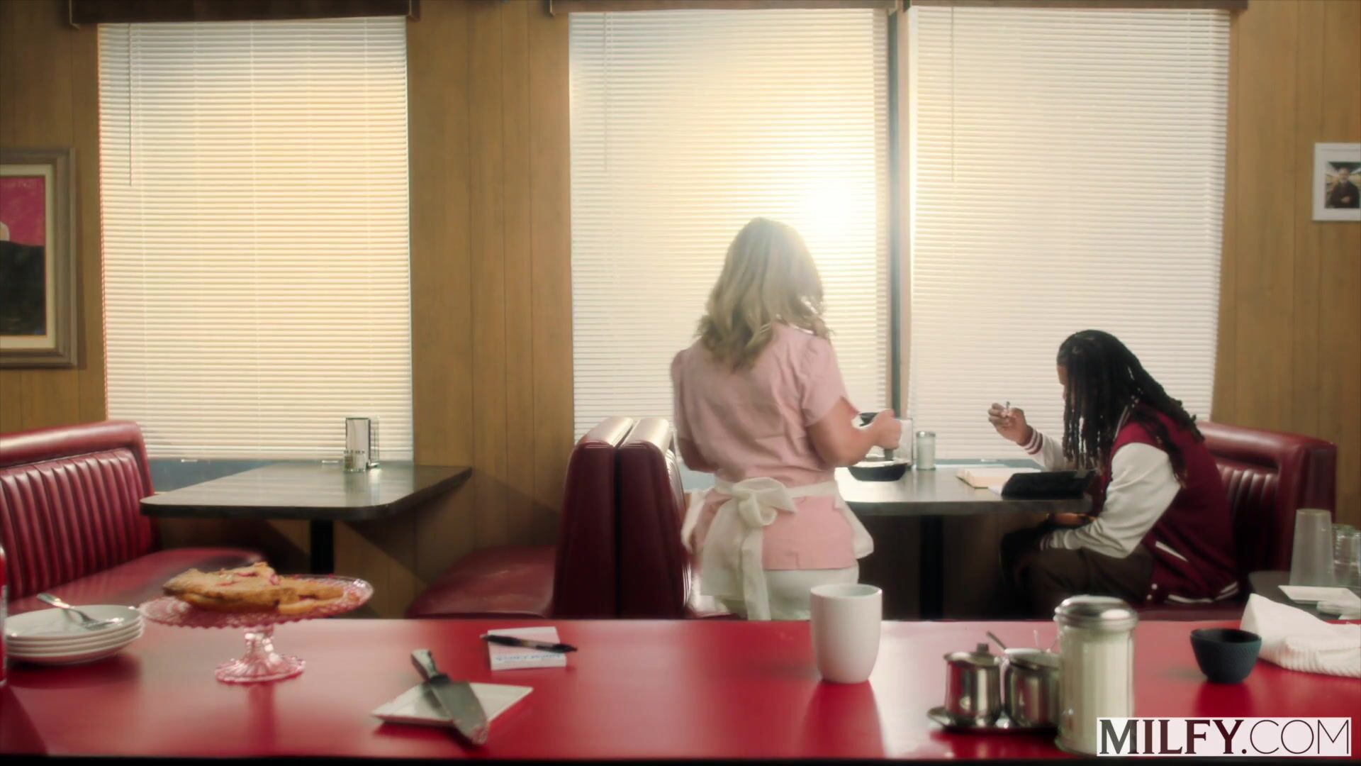 Sexy blonde MILF Honey Heston takes on her son's friend's big black cock