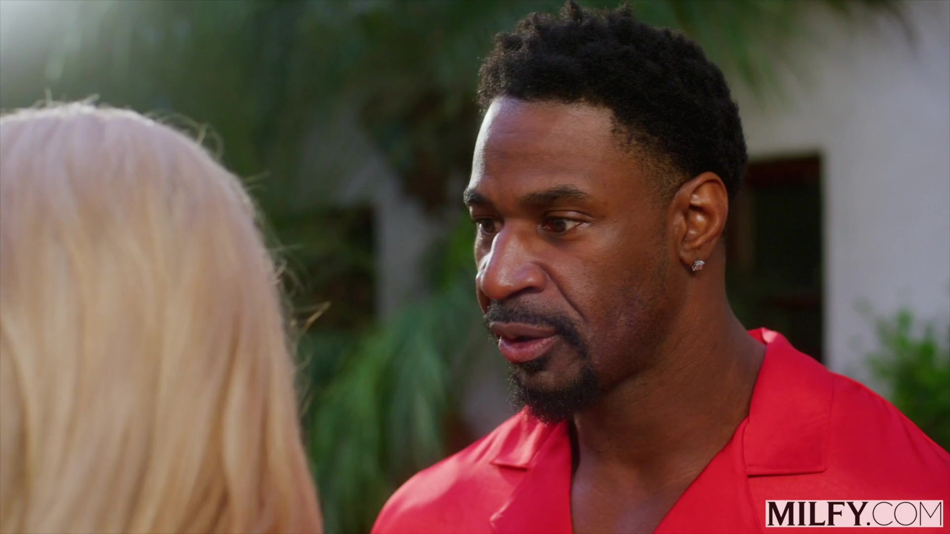 Horny blonde MILF surrender to a massive black cock under the sun in her private garden